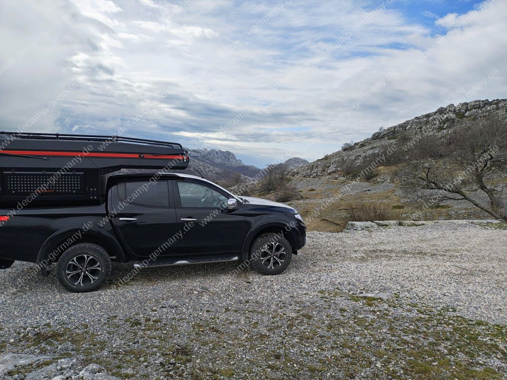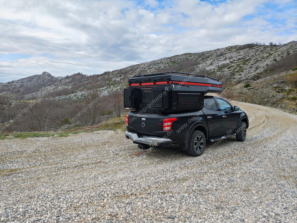 Speziell für Pickups mit Doppelkabine entwickelt, sorgt sie mit Frischwasser und stimmungsvoller LED-Beleuchtung für Komfort und Freiheit auf all Deinen Abenteuern.