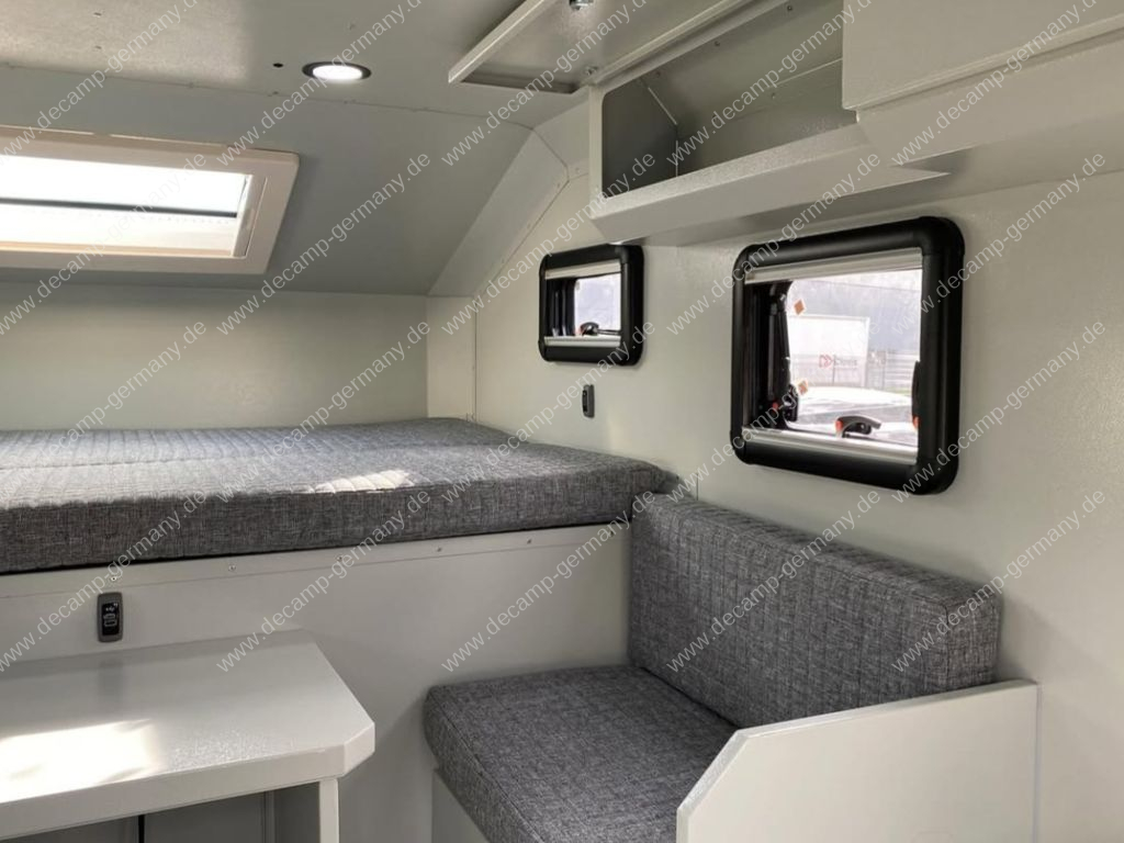 Ob Wochenendausflug oder Langzeitreise – die Decamp Bigbox ist Dein zuverlässiger Begleiter. Frischwasser, stimmungsvolle LED-Beleuchtung und durchdachte Stauraumlösungen sorgen für höchsten Komfort und echte Freiheit auf jedem Abenteuer.